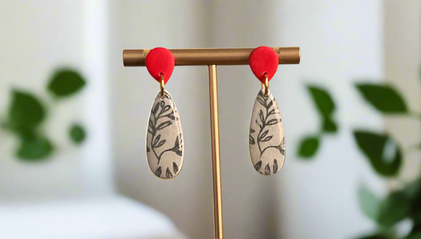 Add a touch of whimsy to your outfit with Ellie dangle earrings. Handmade with polymer clay, these earrings feature a black and white floral pattern, accented with a pop of red on the post. Fun and funky, these earrings are a perfect addition to any jewelry collection.