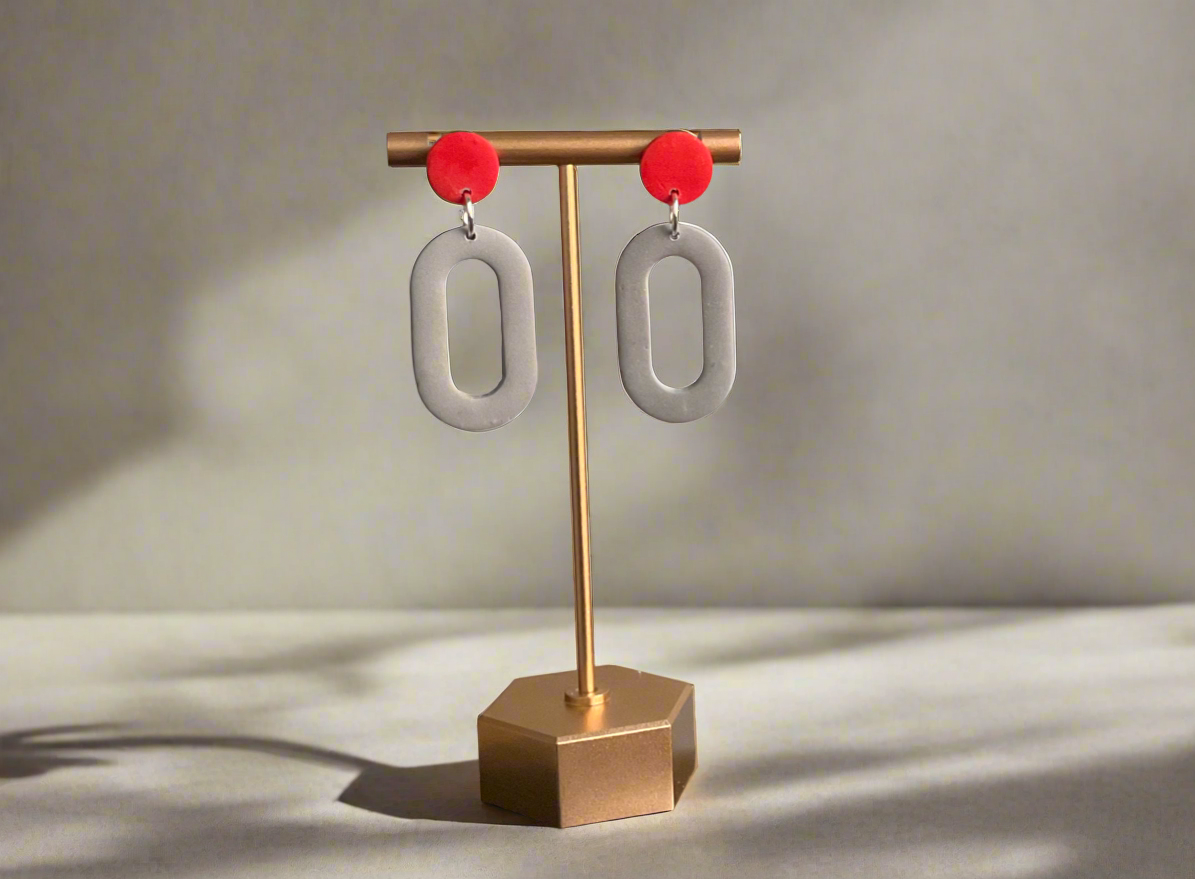 Rock your team spirit with these scarlet and grey dangle earrings. Show your support for the buckeye nation and add some flair to your outfit. Perfect for game days or any day! Go bucks!
